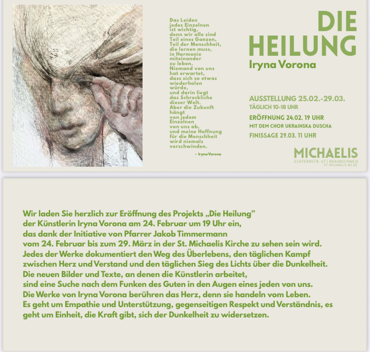 Für mich ist die Ausstellung in der Kirche St. Michaelis von besonderer Bedeutung, denn die Kirche ist ein Ort des Friedens und der Suche nach Licht, sie ist für alle da, die das Gute in dieser Welt suchen.