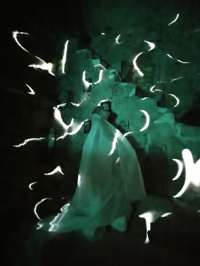 Um das, was ich in dieser Zeit sah und fühlte, zu visualisieren, beschloss ich, Porträts mit Medien- und Videokunstprojektionen zu kombinieren. Auf diese Weise kann jeder mit meinen Augen sehen und mit meinem Herzen fühlen.