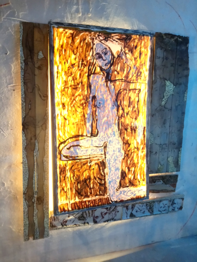 Dieses Werk verbindet Malerei mit Tonaufnahmen, die Esther Fins während einer Pilgerreise gemacht hat, und ist eine Auseinandersetzung mit weiblicher Energie und Hingabe.