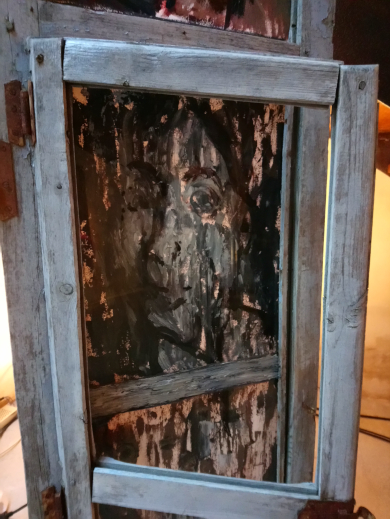 Gemischte Medien (Ölgemälde, Lichtinstallation 220 V, Klangkunst)