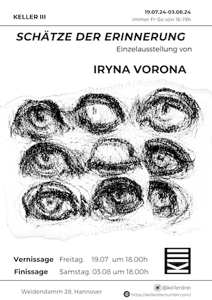 Am 19. Juli 2024, um 18.00 Uhr, wird im Keller III eine Einzelausstellung der ukrainischen Künstlerin Iryna Vorona eröffnet. Begrüßung durch Jochen Weise, Künstler und künstlerischer Leiter des Künstlerhauses in Meinersen.