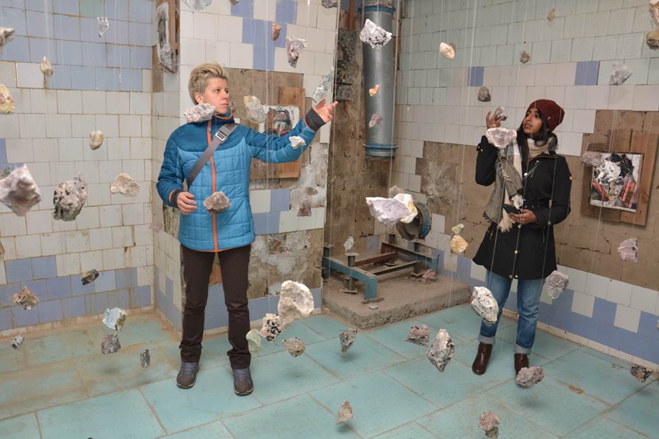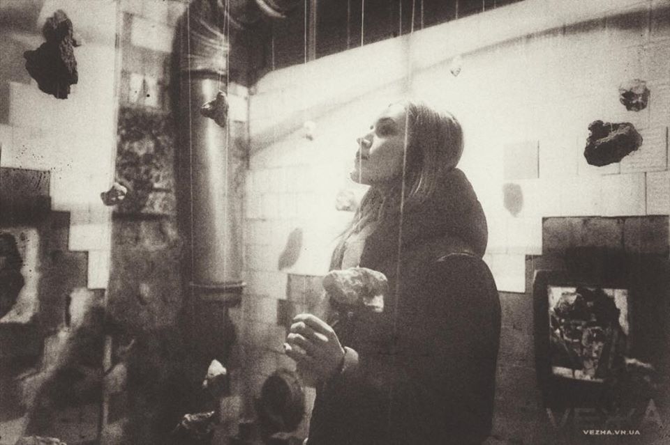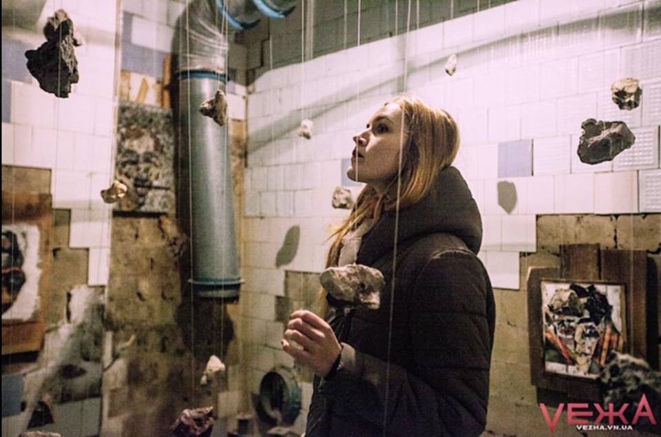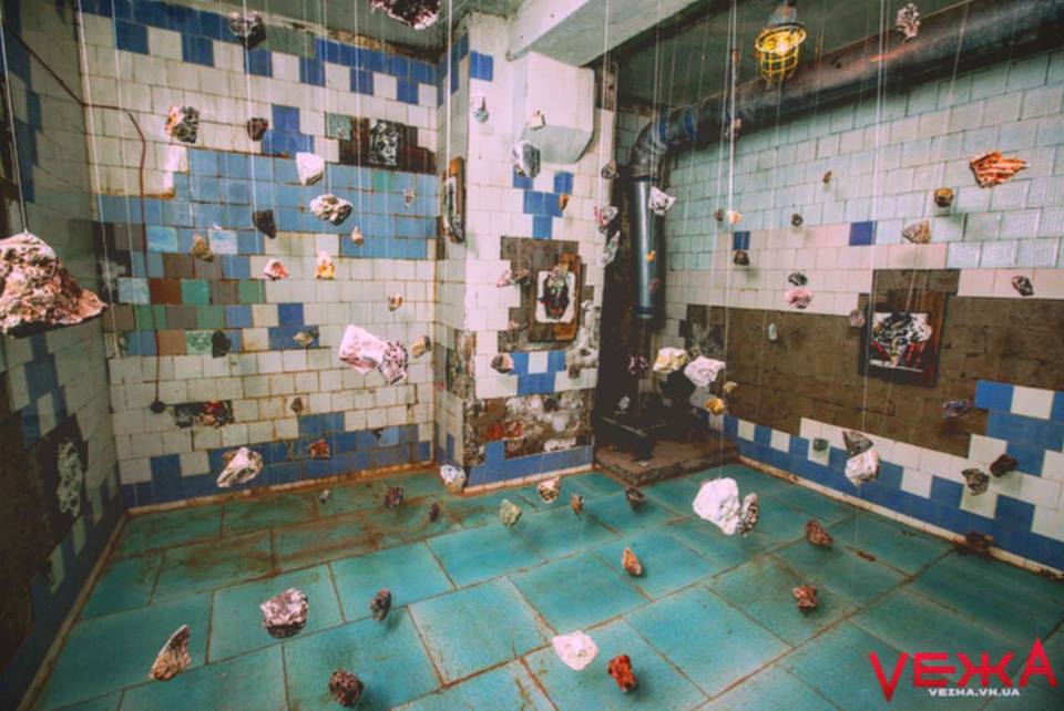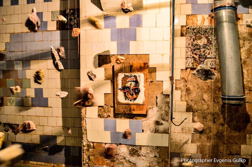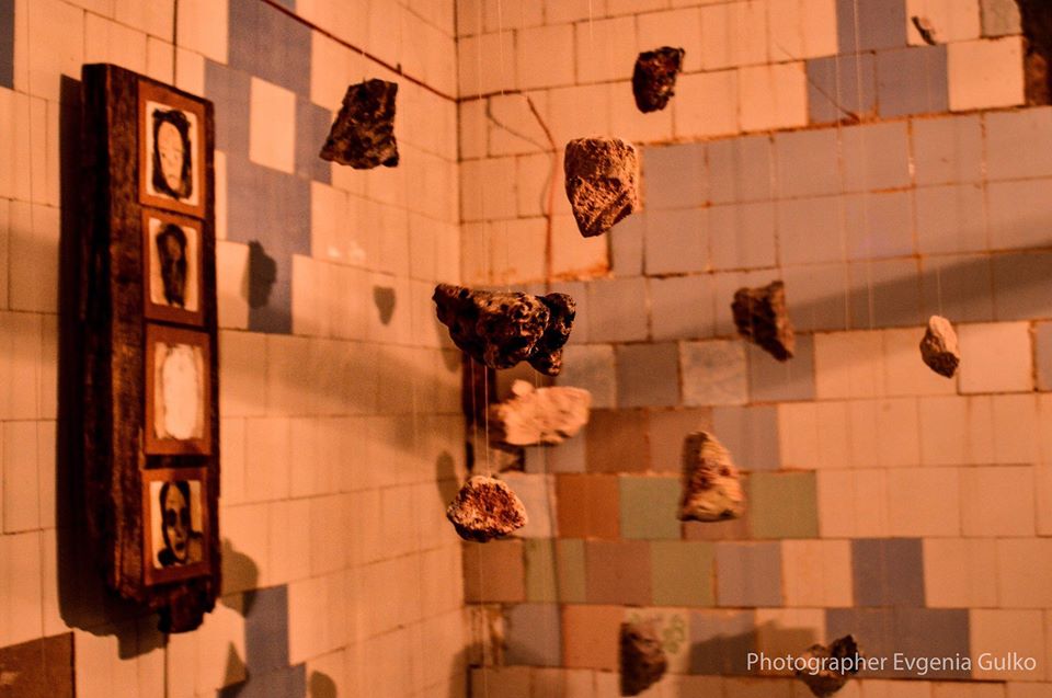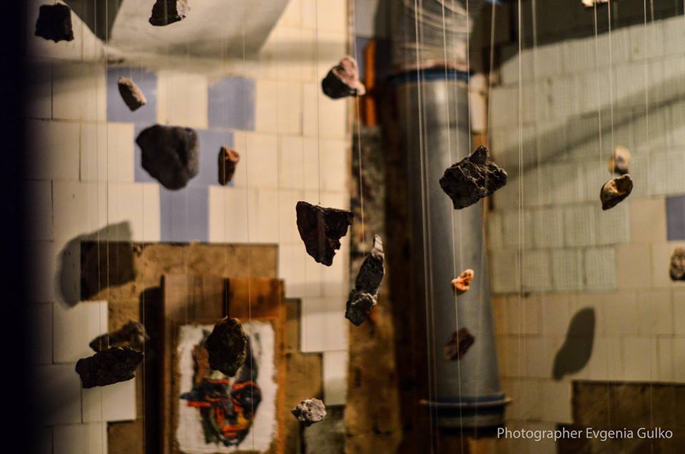Die meisten begeisterten Reaktionen kamen aus dem Keller, dessen jeder Teil zur Bühne für verschiedene visuelle Installationen wurde. Einer der leeren Räume mit abblätternden Fliesen an den Wänden wurde zum Schauplatz der Luftinstallation „Individual vs Society“. An Seilen waren Steine befestigt, die die Suche des Einzelnen nach seinem Platz in der Gesellschaft symbolisieren sollten.