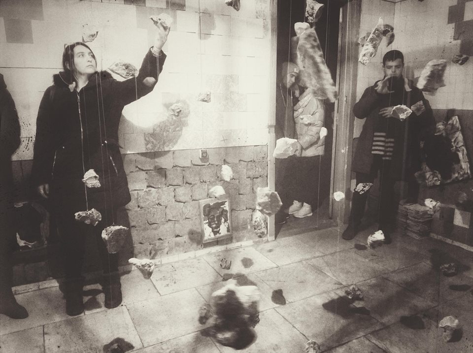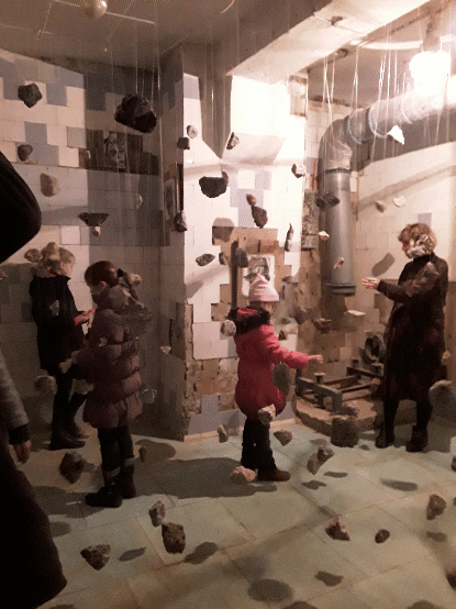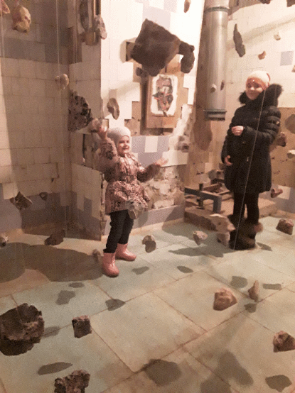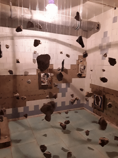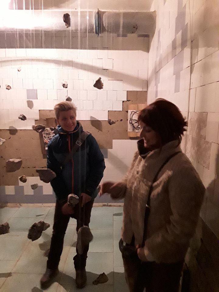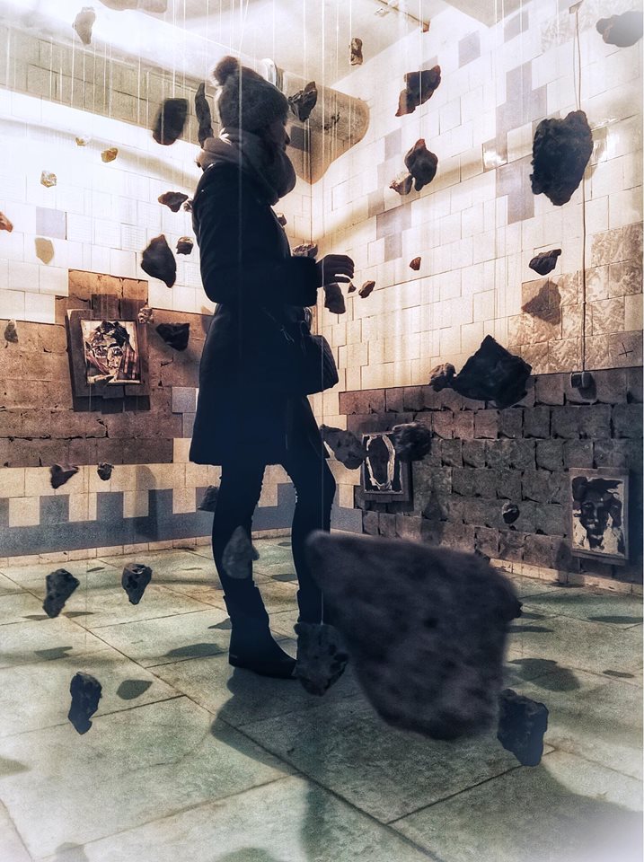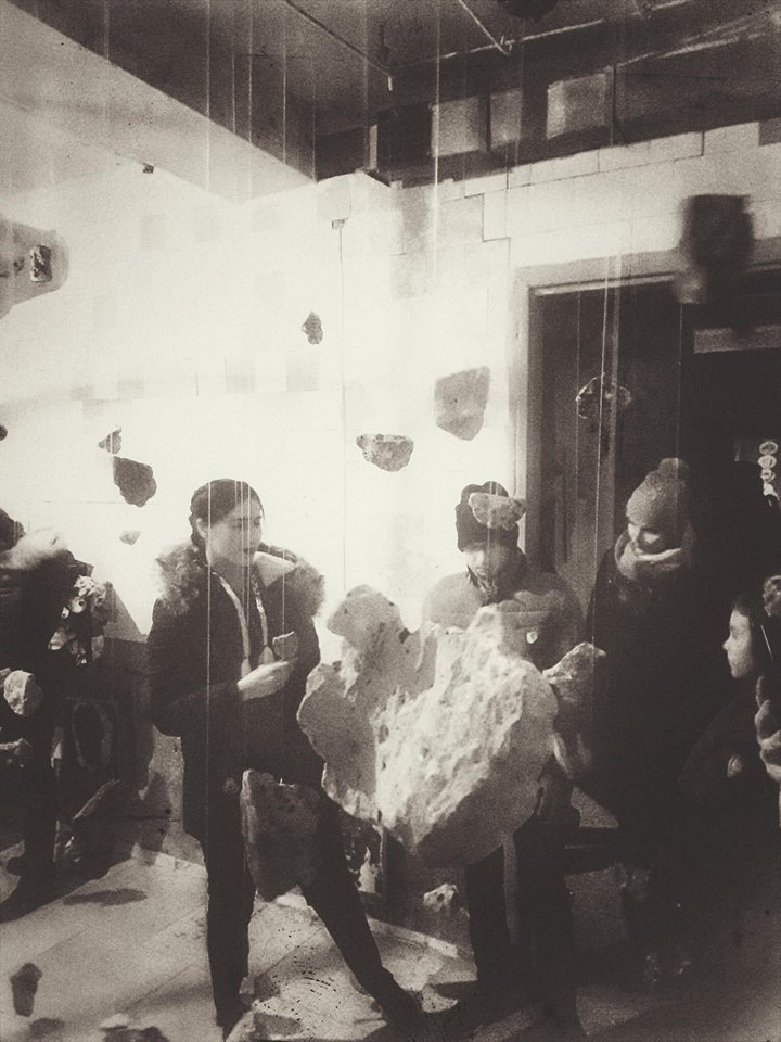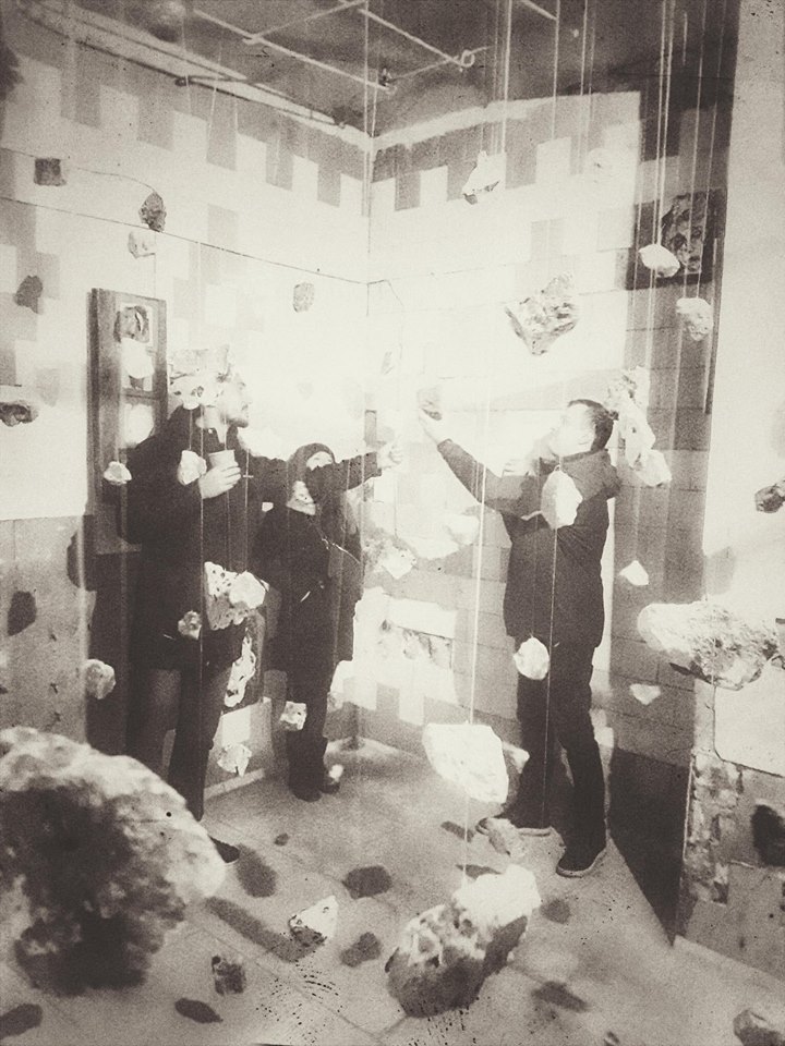 Die meisten begeisterten Reaktionen kamen aus dem Keller, dessen jeder Teil zur Bühne für verschiedene visuelle Installationen wurde. Einer der leeren Räume mit abblätternden Fliesen an den Wänden wurde zum Schauplatz der Luftinstallation „Individual vs Society“. An Seilen waren Steine befestigt, die die Suche des Einzelnen nach seinem Platz in der Gesellschaft symbolisieren sollten.