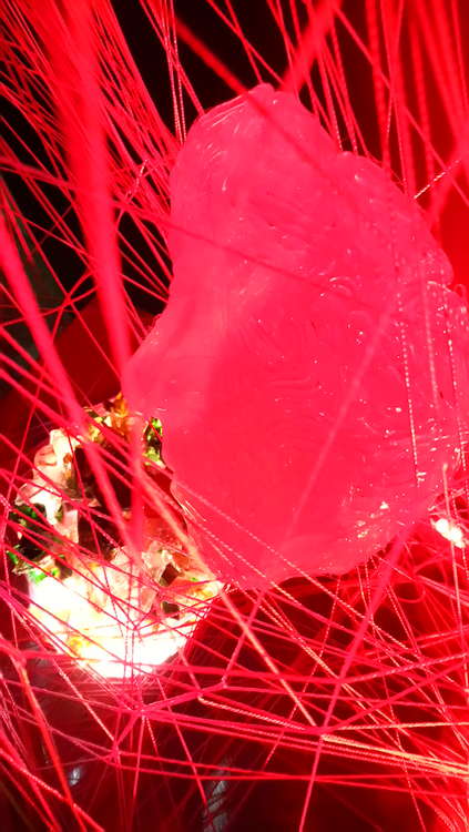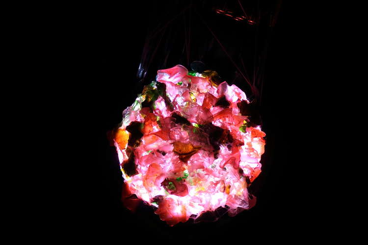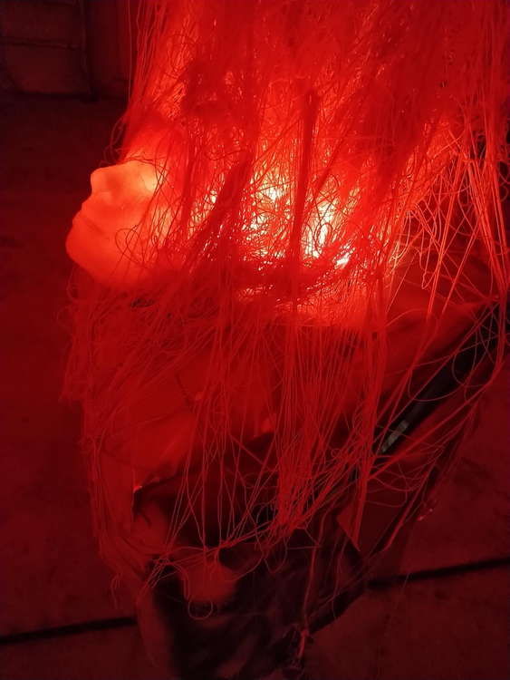 – Skulptur. Größe: 25 x 20 x 15 cm. Materialien: Silikon, Gips, Epoxidharz, Farbstoff, LED-Band.