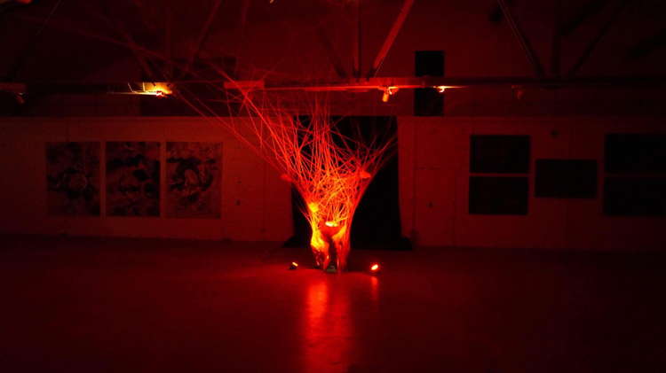 Die wichtigste Idee der Installation ist die Beteiligung des Publikums. Ich hoffe, dass meine eigene Erfahrung anderen helfen wird, ihre eigene Kraft zu erkennen und Ängste zu überwinden. In den Jahren 2018–2019 wurde die Angst zu meinem ständigen Begleiter; ich verspürte Unruhe, wenn ich an die Zukunft, meine Familie, meine Kunst usw. dachte. Ich kam an einen Punkt, an dem dieses Gefühl mich völlig überwältigte, und beschloss daraufhin, meine innere Kraft zu visualisieren. Während dieses Prozesses dachte ich über meine Energie nach, wie über ein lebendiges Element, das Teil von mir ist, warm und leicht. Ich versuchte, dieses Gefühl zu isolieren, seine Form, Farbe und Größe zu finden. Schließlich schuf ich es mit einer Kombination aus Naturmaterialien und einem LED-Streifen, und in diesem Moment begann das Gefühl der Angst zu verschwinden. Je länger ich es betrachtete, desto mehr fühlte ich mich von der Angst befreit.